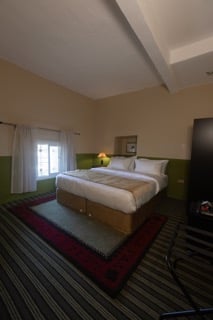 التوزيع عملي، بحيث كل غرفة لها خصوصيتها مع قربها من الحمامات المشتركة، وبعض الغرف مميزة بإطلالات ومساحات أكبر.